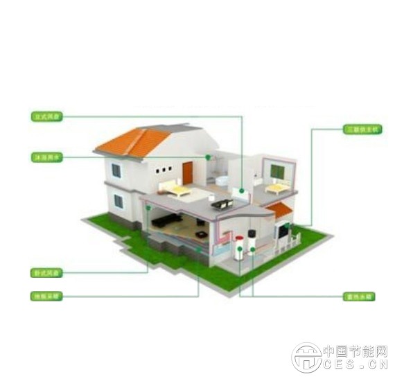 太陽(yáng)能供熱水系統(tǒng):太陽(yáng)能→保溫水箱→浴室