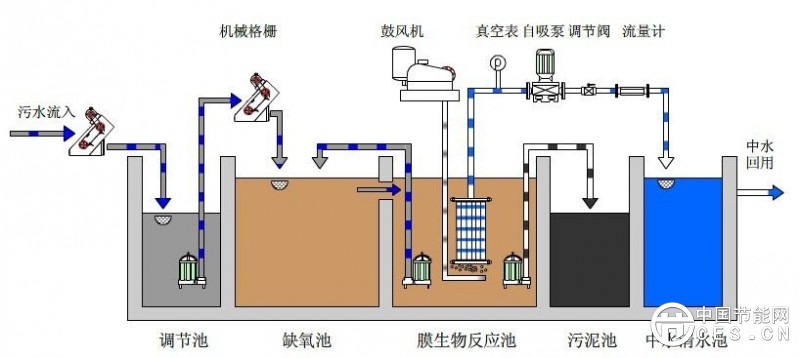 二、 三菱MBR膜生物反應(yīng)器工藝流程圖: