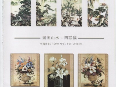 環(huán)諾碳纖維電暖畫采用長(zhǎng)絲碳纖維,作為發(fā)熱主體,產(chǎn)生的輻射熱使室內(nèi)的溫度得以均勻提升,滿足采暖需要。額定功率為400W—1000W,由于產(chǎn)品的熱轉(zhuǎn)換率高,因此成為節(jié)能產(chǎn)品,同樣的條件下,達(dá)到不一樣的效果,比普通電暖器節(jié)能而外觀形式上選擇字畫形式,掛裝在室內(nèi)墻壁上,由于產(chǎn)品本身的藝術(shù)形式,也可以稱為藝術(shù)電暖器