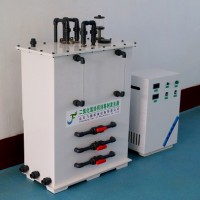 該設(shè)備主要組成部分:鹽箱、發(fā)生器主機(電解槽、陽極板、陰極板、電解隔膜、水射器、電解液雙路循環(huán)系統(tǒng)、冷卻系統(tǒng))以及電解電源。