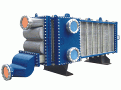 寬板片采用窩狀波紋或平板作為傳熱元件,兩張板片之間通過焊接形成板束,板束上下兩面設(shè)置兩塊壓緊板,通過夾緊螺栓壓緊固定,板束的兩側(cè)通過合頁與盲板、法蘭、分配箱等連接構(gòu)成整機。是專門為制糖、造紙、冶金 、酒精、化工、食品、燃料乙醇等行業(yè)生產(chǎn)工藝中,處理含有固體顆粒、纖維懸浮物、以及粘稠狀流體的加熱或冷卻而開發(fā)的新型焊接式板式換熱器,由于換熱板片的特殊設(shè)計,使換熱效率和壓降損失優(yōu)于其它換熱設(shè)備,并保證了寬間隙通道光滑,流體流動順暢、無滯留、無死區(qū),避免介質(zhì)中固體顆粒物或懸浮物的沉積、堵塞通道等現(xiàn)象的發(fā)生。