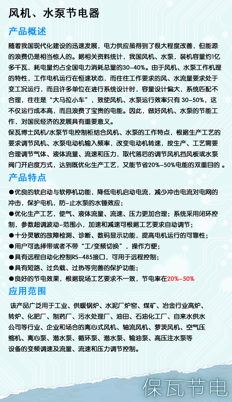 保瓦博士風(fēng)機(jī)/水泵節(jié)電控制柜 保瓦節(jié)電器