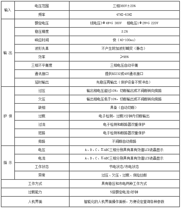 4. 保護(hù)功能:具備低電流旁通、低電壓旁通、過載(過流)旁通、故障自動旁通并報警功能,且這些功能可以由用戶通過觸摸屏自己進(jìn)行“開啟/關(guān)閉”選擇。