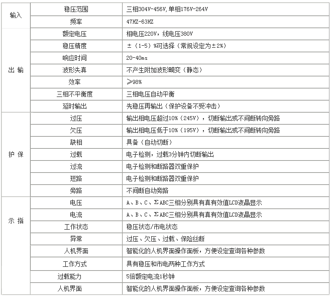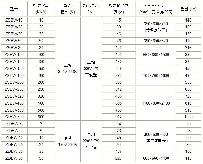 CSBW、SDBW系列三、單相微電腦無(wú)觸點(diǎn)補(bǔ)償式電力穩(wěn)壓器是引進(jìn)國(guó)際交流穩(wěn)壓電源最新技術(shù)并根據(jù)我國(guó)國(guó)情設(shè)計(jì)的一種最新大功率交流穩(wěn)壓電源。它集先進(jìn)的組合繞組補(bǔ)償方式和無(wú)觸點(diǎn)開關(guān),微機(jī)控制交流穩(wěn)壓技術(shù)于一體,具有高校節(jié)能、調(diào)節(jié)快速、三相自動(dòng)平衡、無(wú)機(jī)械故障和碳刷磨損,并具有延時(shí),過(guò)、欠壓報(bào)警和保護(hù)等功能。同時(shí)該穩(wěn)壓器突破性解決了系統(tǒng)和器件運(yùn)行暫態(tài)過(guò)程對(duì)無(wú)觸點(diǎn)開關(guān)所生產(chǎn)的共態(tài)電流沖擊和過(guò)電壓所造成的損害,瞬時(shí)過(guò)載能力強(qiáng),因而大大提高了系統(tǒng)運(yùn)行的可靠性,其友好的LCD顯示畫面方便了用戶的操作及查詢.