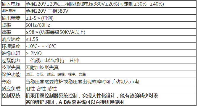 CSBW CDBW抗干擾凈化交流是我公司引進(jìn)吸收西歐先進(jìn)技術(shù),同時(shí)結(jié)合我國(guó)國(guó)情 ,為穩(wěn)定交流電壓而設(shè)計(jì)。當(dāng)外界的供電網(wǎng)絡(luò)電壓波動(dòng)或負(fù)載變化而造成電壓波動(dòng)時(shí),能自動(dòng)保持輸出電壓的穩(wěn)定。本系列產(chǎn)品與其它型式穩(wěn)壓器相比具有容量大、效率高、無(wú)波形畸變、電壓調(diào)節(jié)平穩(wěn)等優(yōu)點(diǎn),適用負(fù)載廣泛,能承受瞬時(shí)超載,可長(zhǎng)期連續(xù)工作,手動(dòng)/自動(dòng)隨意切換,設(shè)有過(guò)壓、過(guò)流、缺相、相序保護(hù)及機(jī)械故障自動(dòng)保護(hù),以及體積小、重量輕、使用安裝方便、運(yùn)行可靠等優(yōu)點(diǎn)。