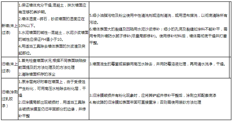表面處理:涂裝前,外墻墻面必須牢固,干燥,清潔和無(wú)浮灰,可根據(jù)情況采取以下不同方法處理: