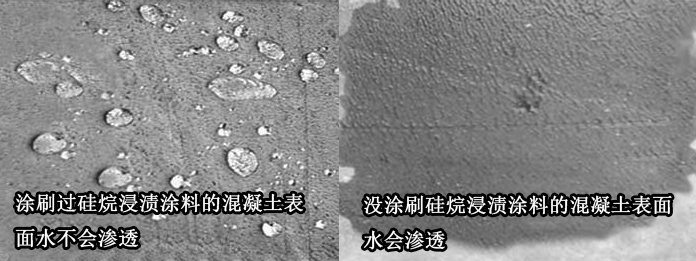 硅烷浸漬涂料的活性成分含量大于98.9%,為無色透明液體,異丁烯三乙氧基硅烷浸漬涂料特殊的小分子結(jié)構(gòu)與混凝土基材有良好的附著力,能滲透到混凝土,優(yōu)良的耐化學(xué)性、耐候性、耐磨性、耐沾污性、自潔功效,具有防水、抗紫外線、良好的透氣性,使用壽命可長達(dá)25年左右。
