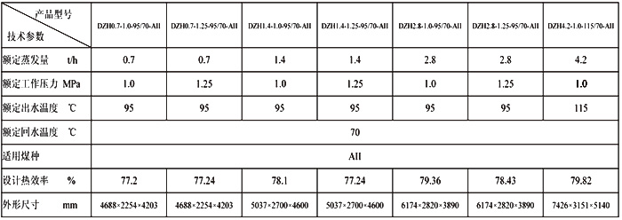 DZH系列單鍋筒手燒燃煤熱水鍋爐技術(shù)參數(shù)