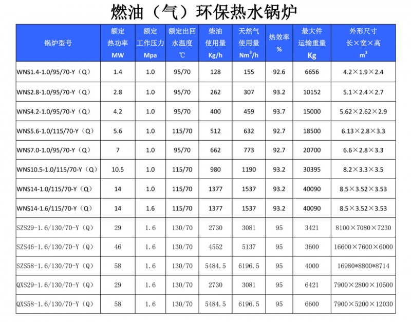 WNS 燃油鍋爐/燃?xì)忮仩t:公司自主研發(fā)的臥式三回程濕背式燃油鍋爐/燃?xì)忮仩t系統(tǒng),采用波形爐膽和螺紋煙管結(jié)構(gòu),該系統(tǒng)有以下優(yōu)點(diǎn):(1)克服了煙氣短路現(xiàn)象,燃燒空間大,有利于吸收熱膨脹,提高柔韌性,減少熱應(yīng)力,延長(zhǎng)鍋爐使用壽命;(2)增加受熱面積,對(duì)高溫?zé)煔猱a(chǎn)生擾流作用,增強(qiáng)輻射傳熱和對(duì)流傳熱效果,提高鍋爐效率;(3)設(shè)置壓力控制器、水位報(bào)警器、超溫報(bào)警、安全閥等多級(jí)安全連鎖保護(hù);(4)采用新型隔熱保溫材料和優(yōu)質(zhì)彩鋼板包裝,保溫性能好,美觀大方,不易銹蝕。