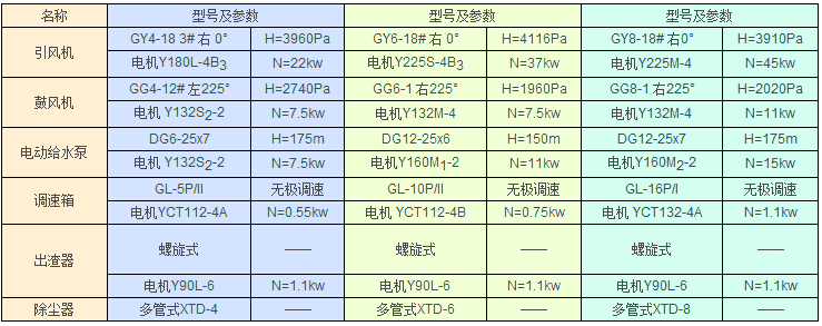 ★ 燃煤蒸汽鍋爐主要特性參數(shù)表: