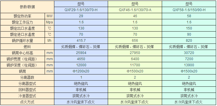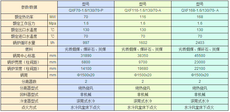 ★ QXF系列循環(huán)流化床熱水鍋爐主要特性參數(shù)表: