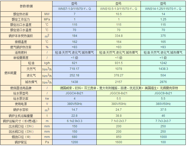 ★ WNS系列全自動燃油(氣)蒸汽鍋爐主要特性參數(shù)表:
