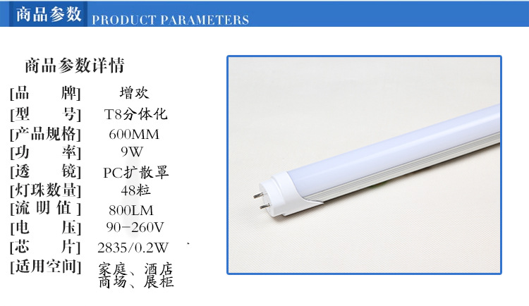 0.6米 9W LED日光燈 T8LED燈管分體燈管