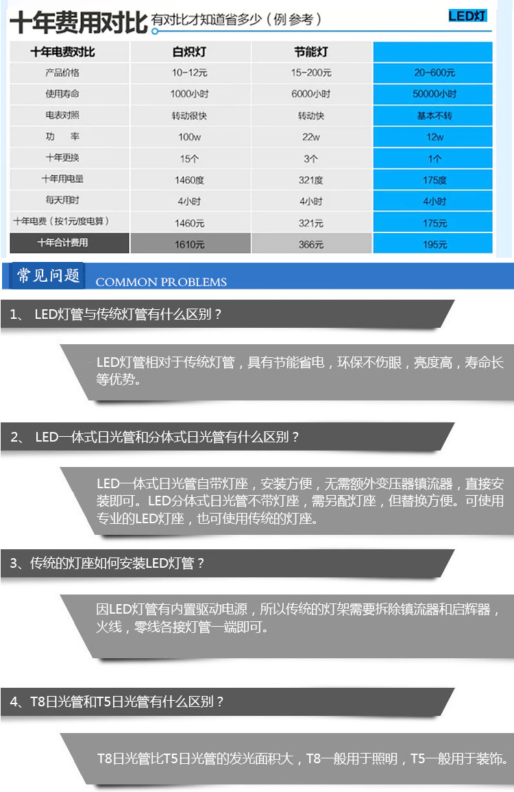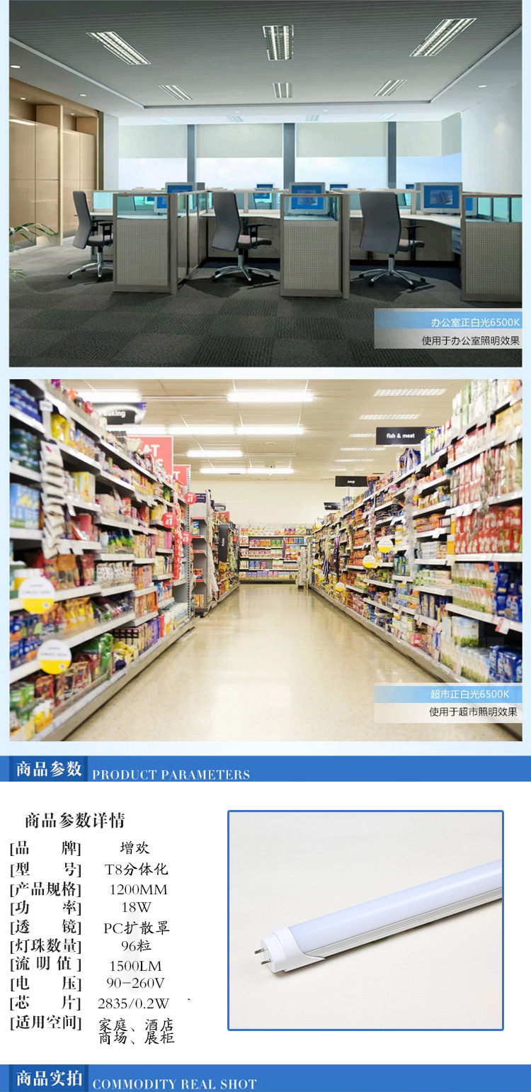 1.2米18WLED日光燈 T8LED燈管分體燈管
