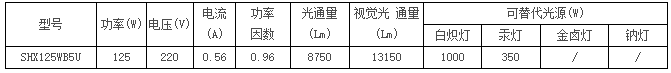 三和祥牌分體式大功率節(jié)能燈技術(shù)參數(shù)表: