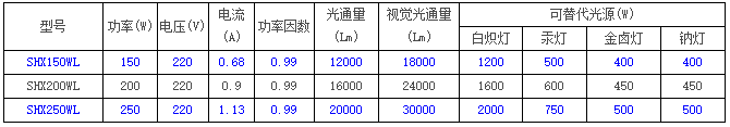 三和祥牌分體式大功率節(jié)能燈技術參數表: