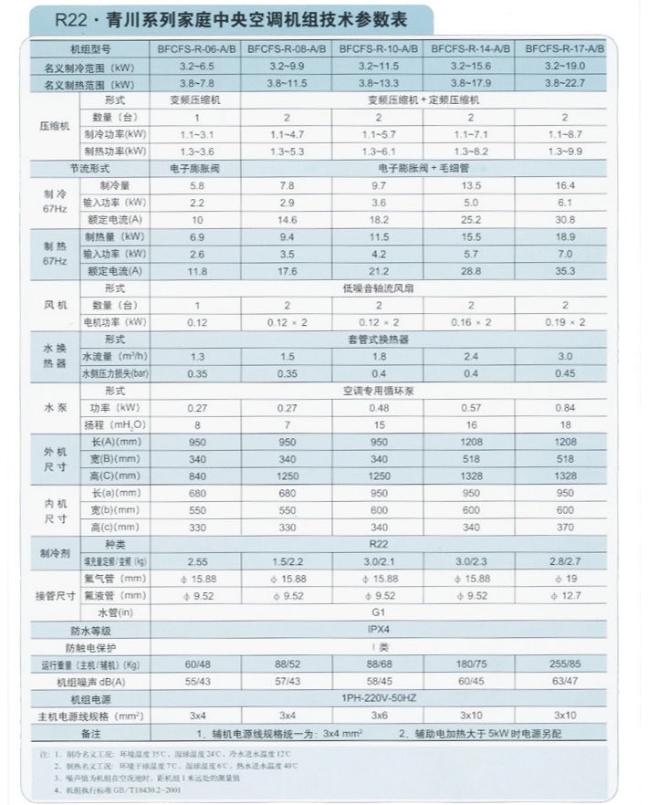 R22青川(分體)系列變頻水家庭中央空調(diào)
