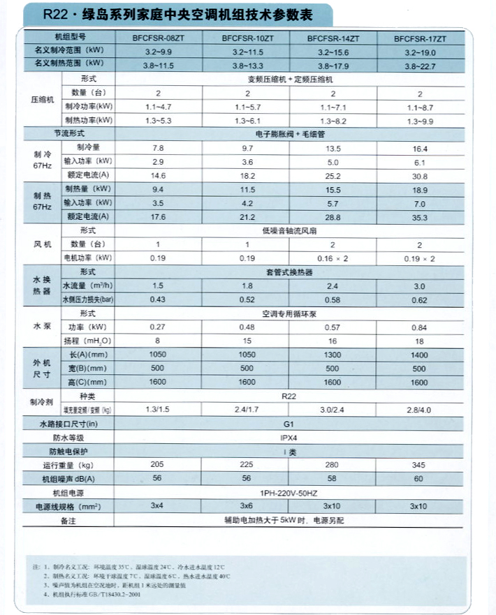 R22綠島(整體)系列變頻水家庭中央空調(diào)