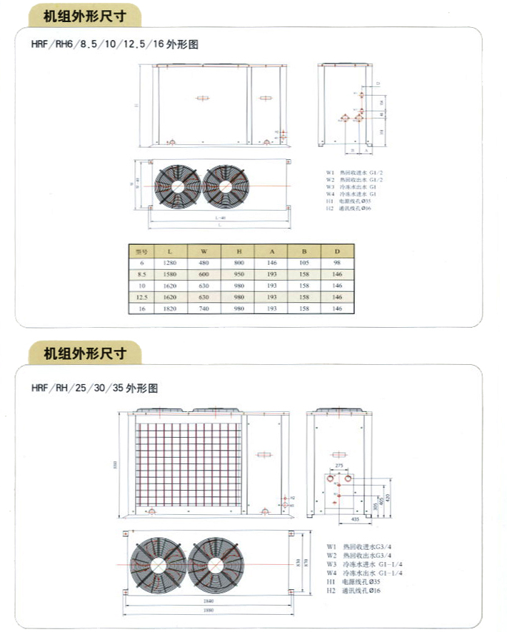 H(R)F/RH系列機組是帶有熱回收的定頻水機可提供生活用水,其體積小、安裝靈活方便,分單冷型和熱泵型共22種規(guī)格。