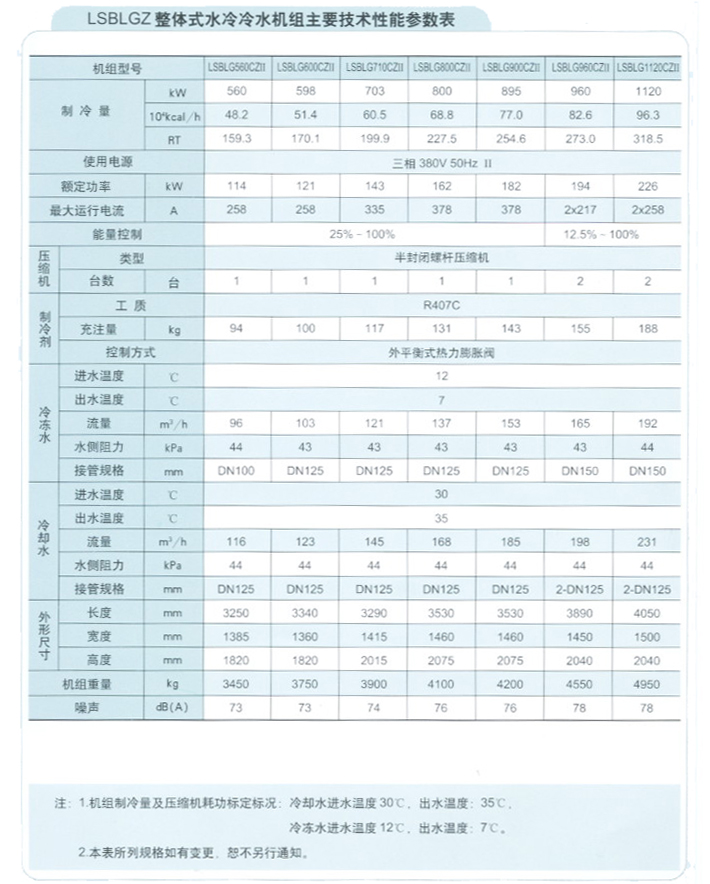 水冷冷水機(jī)組系列(R407C)高效壓縮機(jī)