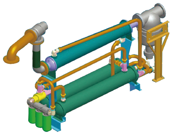 油冷卻器采用翅片管結(jié)構(gòu),而后冷卻器采用光管式結(jié)構(gòu)的設(shè)計(jì),提高冷卻性能,便于維修。