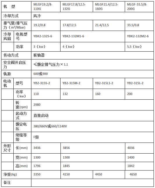 備注:1、此氣量參數(shù)為換算到標準工況下的論氣量,終以實測為準。