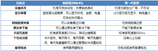 新一體化水控機與老機型的主要功能對照表: