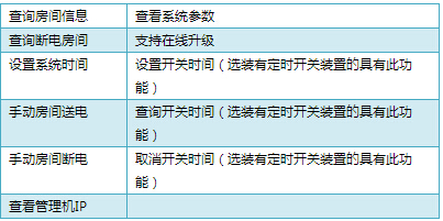 軟件:由房間信息管理、綜合查詢分析、系統(tǒng)維護三大模塊組成。