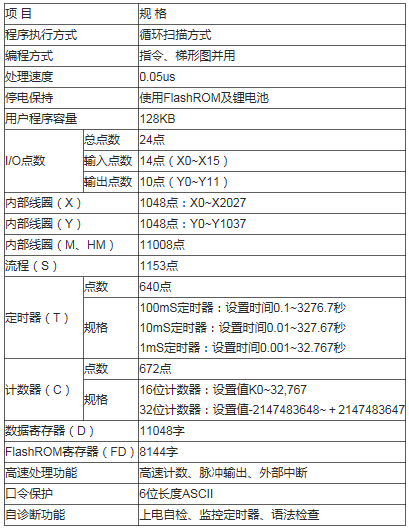 14點(diǎn)NPN型輸入,10點(diǎn)繼電器(R)或晶體管(T)或繼電器晶體管混合(RT)輸出 AC220V(E)電源 最多可外接擴(kuò)展10個(gè)模塊和1塊BD板 具有更高的處理速度 帶時(shí)鐘并對(duì)數(shù)據(jù)進(jìn)行掉電保持 支持基本的邏輯控制和數(shù)據(jù)運(yùn)算 支持高速計(jì)數(shù)、脈沖輸出、外部中斷、電子凸輪、C語(yǔ)言編輯功能塊、I/O點(diǎn)的自由切換、自由格式通訊、MODBUS通訊等功能