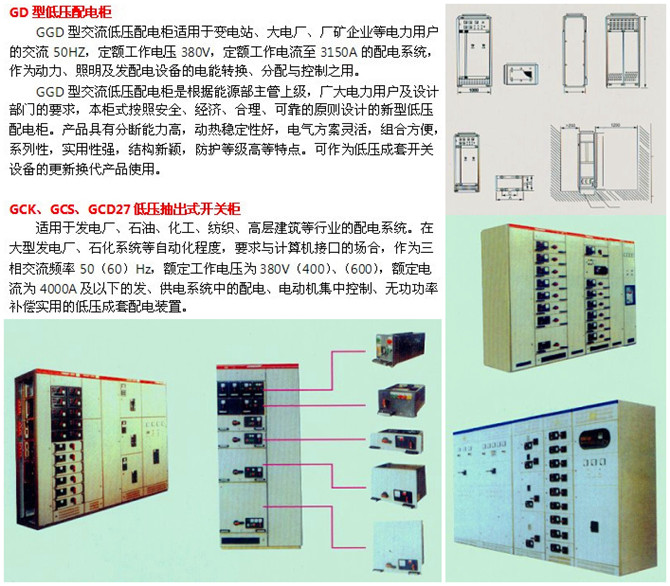 PGL1、2、3型交流低壓配電屏用于發(fā)電廠、工礦企業(yè)、交流50HZ、定額工作電壓不超過380V的配電系統(tǒng)中的作動力、配電、照明之用。