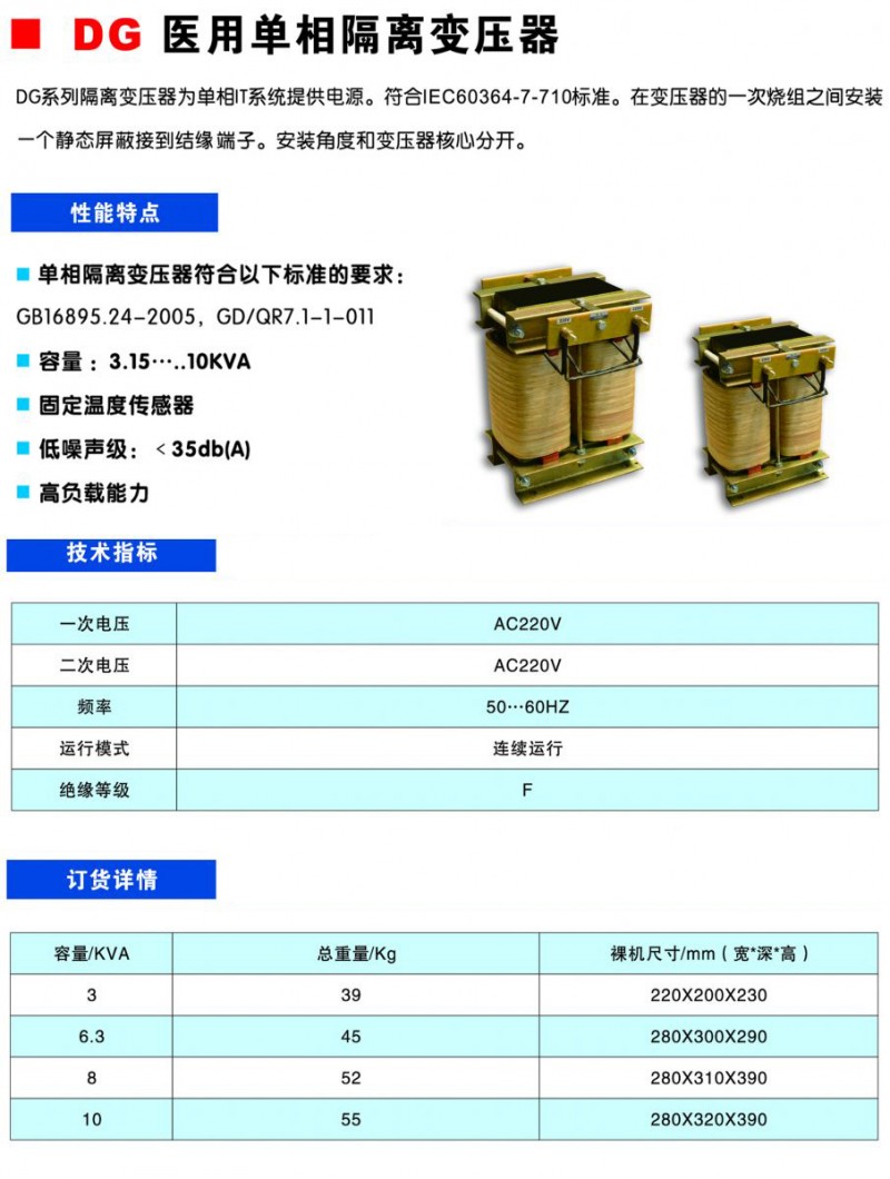 醫(yī)用單相隔離變壓器 谷登DG單相隔離變壓器