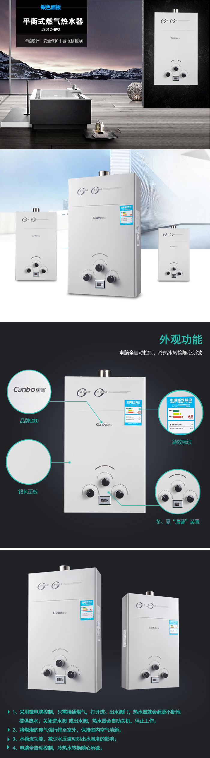 JSQ12-89X 廣東康寶電腦全自動平衡燃氣熱水器