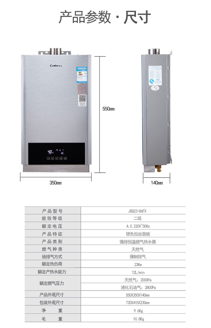 JSQ20-86FX 廣東康寶強排恒溫燃氣熱水器
