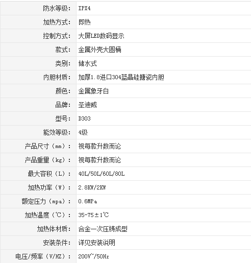 圣迪威儲水式電熱水器