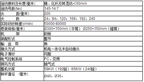 1.紡紗器屬抽氣式結(jié)構(gòu),實(shí)際紡紗速度5-8萬轉(zhuǎn)/分鐘。