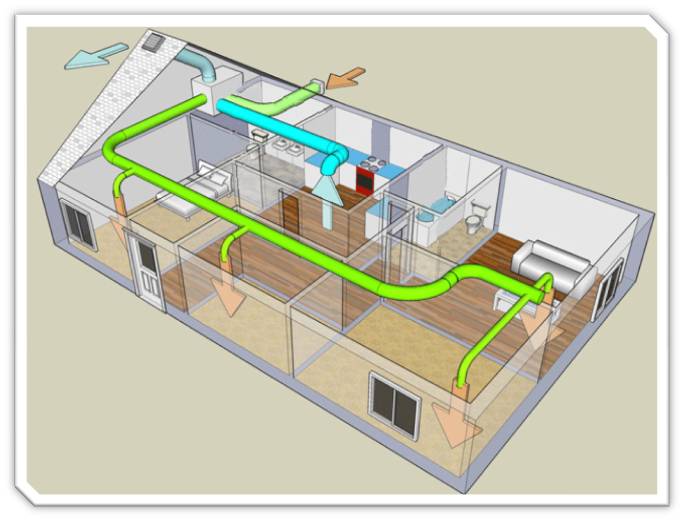 再來說單向流和雙向流。如果室外空氣質(zhì)量較好的話,最好使用單向流。因為單向流的作用就是使用機械的方式將室內(nèi)的空氣排出,室內(nèi)形成負(fù)壓后,室外的新鮮空氣通過門窗縫或墻上開的新風(fēng)進(jìn)風(fēng)口自動進(jìn)入。如果室外空氣質(zhì)量較差,空氣里灰塵量較大,或室外環(huán)境比較吵,可以采取雙向流的方式。