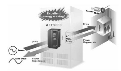 利用臺達(dá)IED電梯一體機(jī)實(shí)現(xiàn)主控制器與驅(qū)動器一體化,大幅提升電梯運(yùn)行性能另搭配臺達(dá)主動式前端可控整流器AFE2000(Active Front End-AFE)提供電源回饋功能,進(jìn)行能源回饋,可節(jié)省能源消耗,使變頻器驅(qū)動的制動能力達(dá)到最大的發(fā)揮。(圖1)。