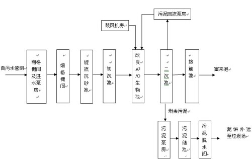 圖1 安達(dá)污水處理廠污水處理工藝流程圖