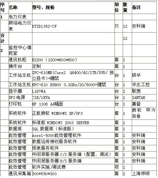 注:該報價清單預(yù)留了2個6.3變電所的通訊采集箱,便于用戶后期改造后系統(tǒng)的納入。