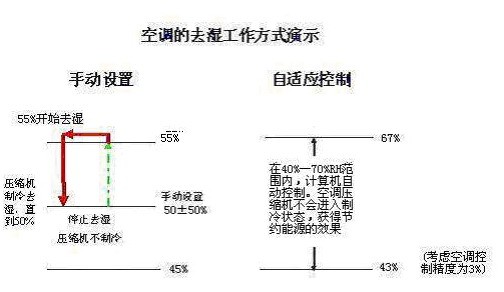 改變手動設置壓縮機頻繁工作的狀況,讓空調濕度設置點,在目標值內盡可能與環(huán)境濕度接近,從而大大節(jié)約了空調用電度數(shù)。