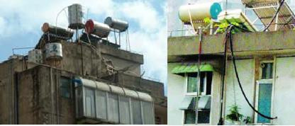 其次,太陽能熱水器的安裝應(yīng)用多為居民自發(fā)性后置安裝。房屋建成后由住戶自行購買和安裝,一方面,其安裝過程中多存在由于安裝不規(guī)范帶來的安全 隱患問題,如承載防風(fēng)、避雷等安全措施不健全;另一方面,住戶自發(fā)安裝,缺乏統(tǒng)一設(shè)計、統(tǒng)一布局、統(tǒng)一安裝,各家各戶選用的太陽能熱水器的規(guī)格、尺寸各 異,安裝位置隨意確定,造成雜亂無章的無序狀態(tài),形成了嚴重的“視覺污染”,致使很多新開發(fā)的中高檔小區(qū)禁止在建筑上安裝太陽能熱水器;再者,由于是事后 安裝,由于施工時多沒有預(yù)留安裝位置和穿樓板孔洞,因此出現(xiàn)破壞屋頂防水層,擠占衛(wèi)生間通氣管空間等問題,更有甚者將白色管道隨意暴露在外界。
