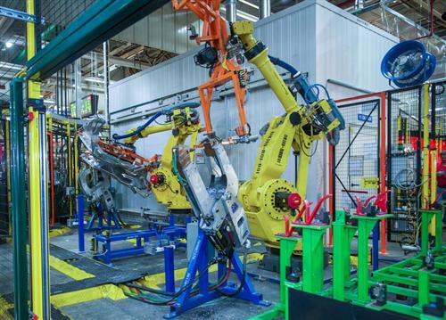 另一站點(diǎn)則為單獨(dú)一臺。每個機(jī)械臂都配備有激光功率發(fā)生器,通過它們,完成車架上71個部分的37個焊點(diǎn)。