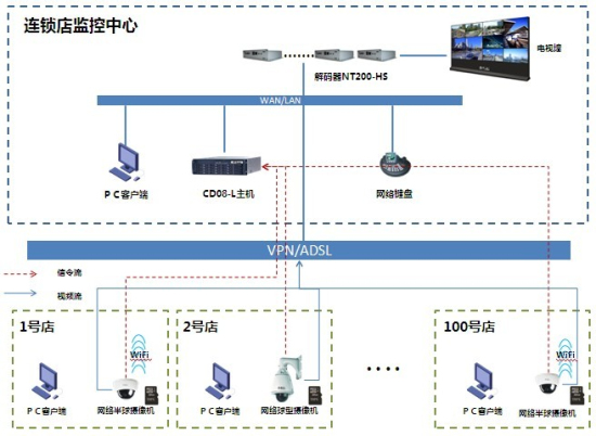 目前,連鎖店行業(yè)早已成為眾安防技術(shù)應(yīng)用的重點領(lǐng)域。作為資深的高清監(jiān)控綜合解決方案先鋒,筆者所在公司針對連鎖店行業(yè)專門推出了一系列完整的 高清解決方案,從前段畫面數(shù)據(jù)采集到高清存儲再到高清畫質(zhì)顯示,充分滿足了連鎖店面對高清數(shù)據(jù)處理、存儲以及顯示的需求,下面將通過實際的應(yīng)用案例來進行 詳細的介紹。