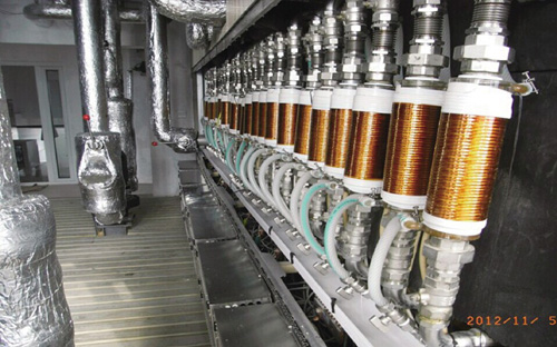 以希奧特太陽能聯(lián)供系統(tǒng)示范工程為例,項目所在地位于城郊工業(yè)園區(qū),根據(jù)當(dāng)?shù)丨h(huán)保部門要求該區(qū)域不得新增燃煤鍋爐,同時該區(qū)域無燃?xì)夂褪姓峁芫W(wǎng)覆蓋, 但項目屬于大工業(yè)用電范疇,享受分時電價優(yōu)惠政策(夜間低谷電價為平價電的50%)所以采用了我公司專利產(chǎn)品“電磁感應(yīng)加熱裝置”進(jìn)行蓄熱式輔助加熱。
