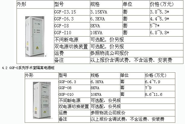 4主要產(chǎn)品及電源柜的報價方案為了方便廣大客戶對安科瑞產(chǎn)品的選擇,現(xiàn)列出產(chǎn)品報價,如下表所示:4.1 GGF-I系列ICU/CCU病房隔離電源柜