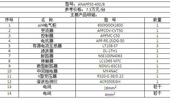 3.3 主要設(shè)備清單有源濾波器報價及主要元件清單