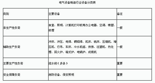 由于電氣設備行業(yè)的產(chǎn)品較為廣泛,因而,該類企業(yè)的工藝標準、環(huán)境控制等要求也不盡相同,主要用電設備見下表: