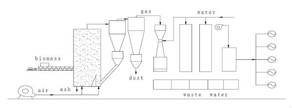 (圖一)生物質氣化發(fā)電系統(tǒng)工藝圖