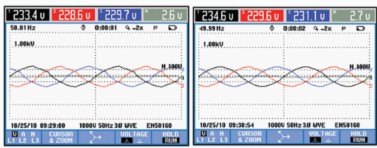 1)三相電壓波形前后對(duì)比,見(jiàn)圖2、圖3.