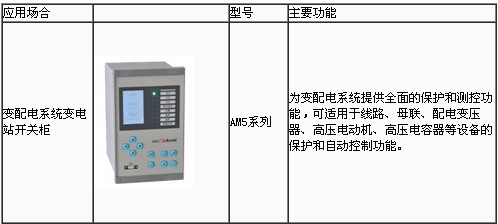 為了能準(zhǔn)確采集供電系統(tǒng)的電參量信號(hào)與非電量信號(hào),實(shí)現(xiàn)供電系統(tǒng)的全面保護(hù)和測(cè)控,在一次系統(tǒng)里合理配置了安科瑞電氣股份有限公司的AM5系列保護(hù)裝置和ASD系列開(kāi)關(guān)柜綜合測(cè)控裝置,以確保供電系統(tǒng)穩(wěn)定可靠運(yùn)行,具體包括:2個(gè)主供電源進(jìn)線側(cè)開(kāi)關(guān)柜上選配AM5-F進(jìn)線保護(hù)裝置;冷凍機(jī)房側(cè)開(kāi)關(guān)柜上選配AM5-M電動(dòng)機(jī)保護(hù)裝置;變壓器出線柜上選配AM5-T變壓器保護(hù)裝置;一般出線柜上選配AM5-F進(jìn)線/饋線保護(hù)裝置;PT柜上選配AM5-U PT監(jiān)測(cè)裝置等。各裝置外形與功能說(shuō)明見(jiàn)表4,其中AM5系列保護(hù)裝置詳細(xì)功能可參見(jiàn)表5。